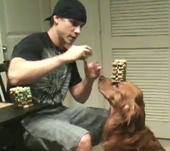 [영상] 인내심 좋은 개, 코에 젠가 블럭을 쌓아도...