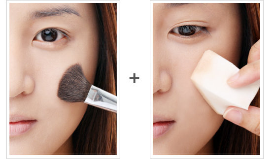 상큼한 매력! 윤진이의 ‘돌리걸 메이크업’ 오밀조밀한 이목구비도 메아리처럼 그 매력을 살리지 않으면 무용지물! 또렷한 아이라인과 속눈썹으로 인형 눈매를 연출한 뒤, 걸리시한 느낌이 물씬 풍기는 핑크, 피치톤 블러셔로 생기 넘치는 볼과 입술을 만들어준다. 발그레한 복숭아처럼 사랑스러운 이미지를 연출하는 것이 포인트! 정해랑(아라알레스 메이크업 실장) BASE 눈, 코, 입이 돋보이려면 결점 없이 매끈한 피부는 필수! 피부가 두꺼워지지 않도록 베이스의 두께감을 조절해 얇고 고르게 발라준다.