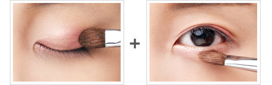 2. 미세한 펄감의 핑크톤을 눈두덩에 베이스로 깐 후, 브라운 컬러를 포인트 섀도로 발라준다.