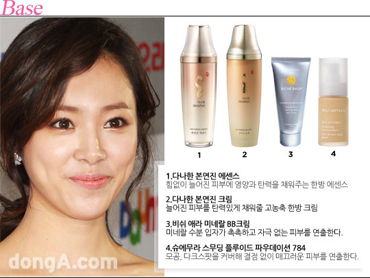 세안 후 기초단계를 꼼꼼히 바른 후, 손바닥으로 충분히 흡수시킨다. 파운데이션을 얼굴에 전체적으로 고르게 펴바르고, 스폰지의 코팅된 면으로 피부에 밀착시켜 모찌 같은 쫀쫀하고 매끈한 피부결을 완성한다. 내추럴한 느낌을 위해 파우더는 생략한다