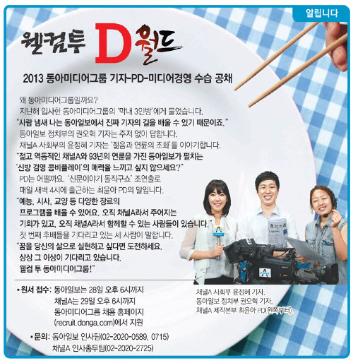 [알립니다]2013 동아미디어그룹 기자-PD-미디어경영 수습 공채