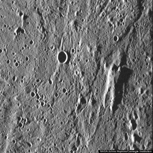 미구 허핑턴포스트 등 외신에 따르면 미국 항공우주국(NASA)가 2004년 8월에 발사한 수성 탐사선 ‘메신저’로부터 전송받은 수성 사진에 사람 모양을 한 특이한 지형이 발견됐다고 지난 20일(현지시각) 보도했다.