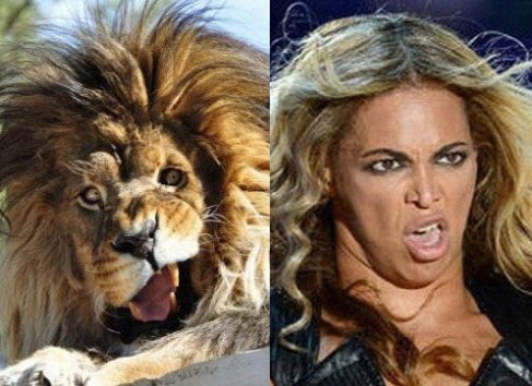 최근 온라인 커뮤니티 게시판에 ‘비욘세 닮은 사자’라는 제목의 사진이 올라왔는데 두 사진이 너무나 닮은꼴을 하고 있다.