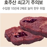 호주산 쇠고기 수입량도 급증세다. 호주산 쇠고기 수입량은 지난해 14만2797t으로 10년 전인 2003년(6만4127t)의 2.23배로 늘었다. 같은 기간 미국산 쇠고기 수입량은 19만9409t에서 8만9239t으로 10년 사이 절반 이상 줄었다.