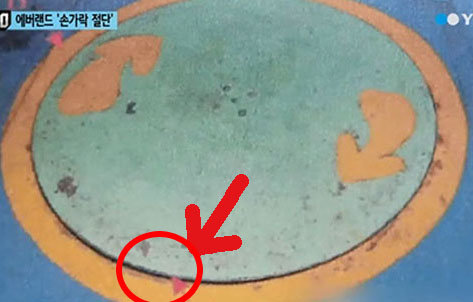용인 에버랜드의 놀이기구 '오즈의 성'을 타던 5세 남자 어린이가 손가락이 절단되는 사고를 당한 가운데 사고의 원인이 된 원형판이 눈길을 끌고 있다.
