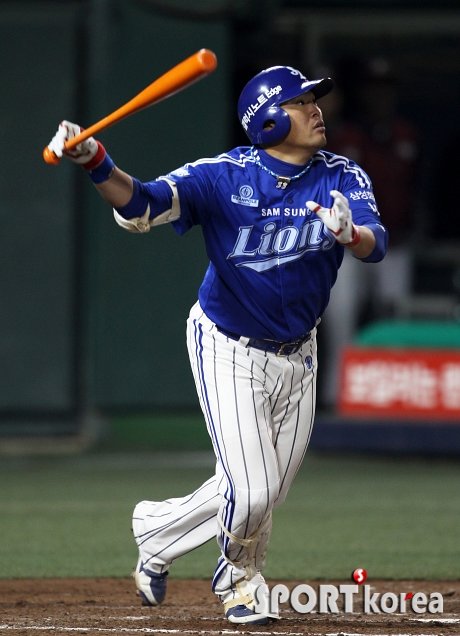 7일 오후 서울 목동구장에서 열린 2014 프로야구 넥센 히어로즈와 삼성 라이온즈의 한국시리즈 3차전에서 삼성 2번 박한이가 9회초 2사 1루 때 비거리 120미터 중월 투런홈런을 치고 있다.
