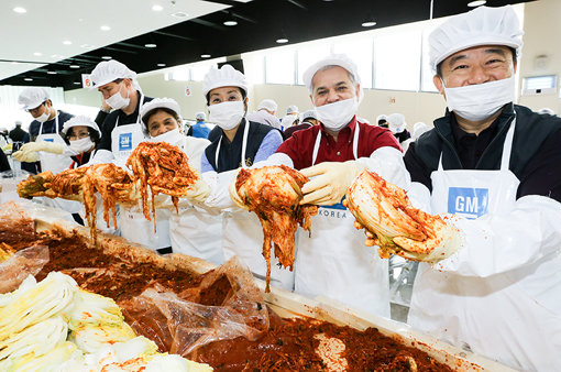 한국지엠주식회사 임직원들이 설립한 사회복지법인 ‘한국지엠한마음재단’이 15일 한국지엠 부평본사에서 ‘사랑의 김장김치 나눔’ 행사를 갖고, 총 12톤의 김치를 인천지역에 위치한 사회복지시설과 독거노인 세대에 전달했다. 한마음재단은 2005년 한국지엠 임직원이 중심이 되어 설립한 사회복지 법인이다. 출범 이후 매년 설, 추석 명절이나 기념일 등에 다양한 이웃사랑 봉사활동을 펼쳐 오고 있다.