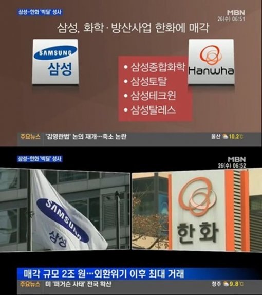 삼성그룹이 화학과 방상 부문 계열사를 한화그룹에 매각키로 결정했다.
