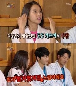 ‘해피투게더’ 조윤희가 사극 헤어스타일을 하는 것이 부끄럽다고 고백했다.