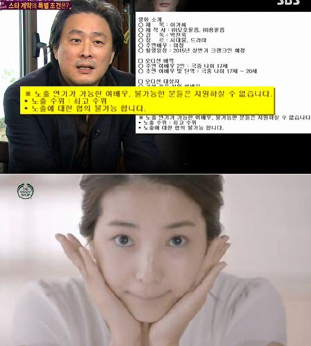 앞서 박찬욱 영화 감독은 ‘아가씨’ 여자 주인공 및 여자 조연 오디션 공고 당시 노출 연기와 관련된 사항에 대해 언급한 바 있다.