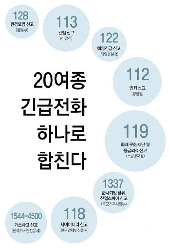 한편, 현재 긴급신고번호는 ▷환경오염신고 128 ▷간첩신고 113 ▷해양긴급신고 122 ▷범죄신고 112 ▷화재 구조 재난 및 응급의료신고 119 ▷군사기밀 탈취, 산업스파이 신고 1337 ▷가스사고 신고 1544-4500 등 각 부처별로 다르다.