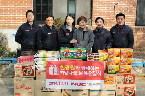 글로벌 프리미엄 주방가전 전문업체 (주)엔유씨전자(대표 김종부, www.nuc.co.kr)가 지난 11일, 연말을 맞아 뜻깊은 나눔을 실천하며 지역사회와 온기를 나눴다. 대구 북구 산격동에 위치한 ‘천광보육원’을 찾아 ‘희망나눔’ 물품을 전달한 것이다.