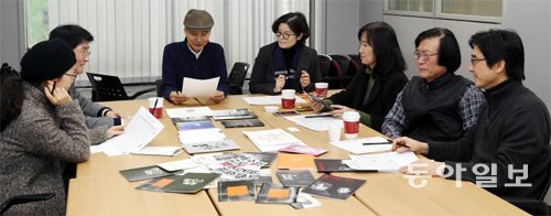 23일 서울 서대문구 동아일보 충정로 사옥 3층 회의실에서 동아연극상 심사위원들이 최종 심사를 하고 있다. 왼쪽부터 김방옥(평론가·동국대 교수) 최치림(연출가·국제극예술협회 한국본부 회장) 이병훈(연출가·국민대 종합예술 콘서바토리 교수) 이진아(평론가·숙명여대 교수) 김미도(평론가·서울과학기술대 교수) 이강백(극작가) 김중효(무대미술평론가·계명대 교수) 심사위원.