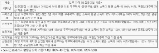 입주자 선정기준은 7월31일 입법예고한 대로 결정되었으며, 세대주 요건 부분에서만 약간의 변화가 있었다.