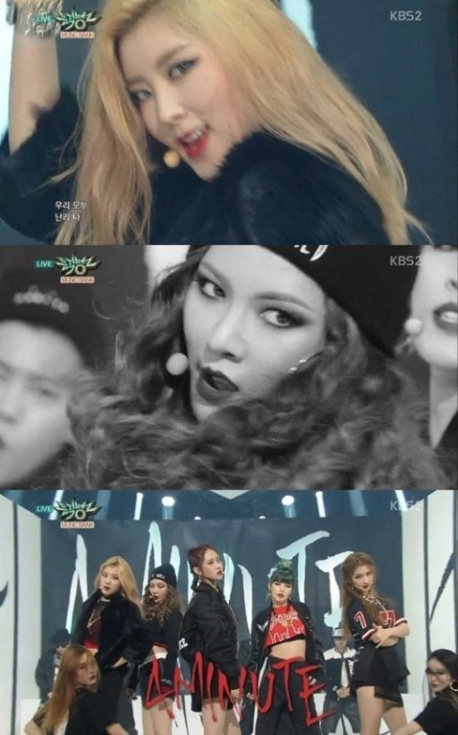 이어진 타이틀곡 ‘미쳐’ 무대에서는 탄탄한 복근과 각선미가 드러나는 검은색 의상을 입고 무대를 압도했다. 포미닛은 힙합 스웨그로 무장한 역동적인 퍼포먼스를 선보이며 대체 불가의 카리스마를 과시했다.