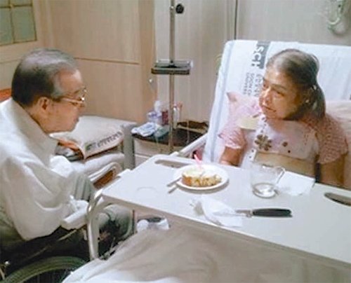 김종필 전 국무총리가 지난해 수술을 받은 부인을 병원에서 간병하고 있는 모습.(정진석 전 의원 페이스북)