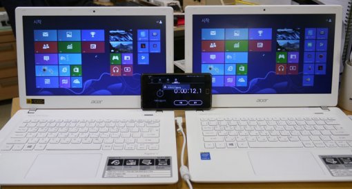 각종 벤치마크 프로그램을 이용해 수치적인 성능을 측정해 보는 것도 좋겠지만, 일반 사용자 입장에선 이보다는 실제 사용 중 느낄 수 있는 감각의 차이가 더 중요하다. 우선 두 노트북에 동일한 윈도8 운영체제를 설치, 부팅 속도를 측정했다. 두 노트북의 전원버튼을 누른 후 운영체제의 부팅이 완전히 끝날 때까지의 시간을 측정했다.