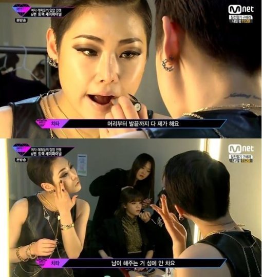 이날 치타는 세미파이널 무대를 준비하며 그룹 에이오에이 지민과 같은 대기실을 썼다. 아이돌인 지민이 전문가로부터 메이크업과 헤어 손질을 받았지만 치타는 혼자서 모든 것을 준비해 눈길을 끌었다.