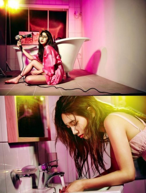 공개된 티저 사진 속 수지는 욕실에서 핫핑크색 가운을 걸친 채 헤어 드라이어를 손에 들고 다양한 포즈를 취하고 있다. 특히 수지의 깜찍한 표정과 가늘고 긴 팔, 다리가 보는 이들의 시선을 사로잡았다.