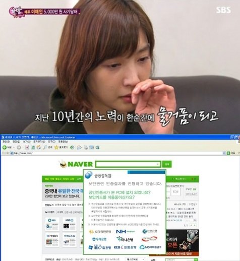 이 해인은 “인터넷을 하려고 켰는데 금융감독원 창이 뜨더라. 안 좋은 사이트라는 생각은 못했다”며 “내 휴대전화 번호를 등록하면 금융감독원에서 보호를 해 준다고 했다. 그래서 의심없이 보안카드번호를 입력했다. 이후 총 3번의 출금 메시지를 받고서야 피싱 사기임을 알아챘다”고 토로했다.