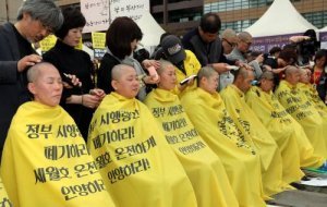 2일 세월호 피해자모임인 416가족협의회는 서울 광화문광장에서 해양수산부가 발표한 배상·보상안에 반대하며 머리를 깎는 삭발식을 진행했다.