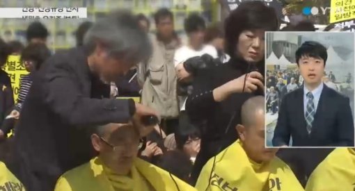 세월호 유가족들이 배상 및 보상 절차 전면중단을 요구하며 단체 삭발을 감행했다.