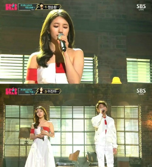 이날 ‘K팝스타4’ 세 참가자들의 솔로 무대가 끝난 뒤에는 각 참가자들의 콜라보레이션 무대가 이어졌다. 케이티김은 이하이와, 정승환은 수지와 호흡을 맞췄고 이진아는 권진아와 함께 무대를 꾸미게 됐다.