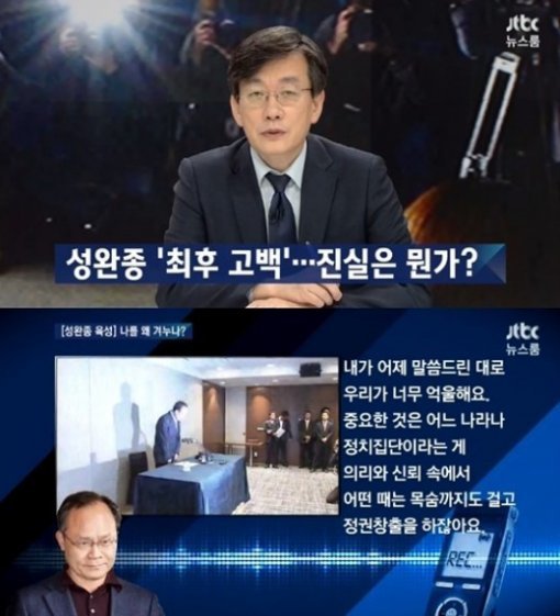 앞서 손석희 앵커가 진행하는 JTBC 뉴스룸은 15일 故 성완종 전 경남기업 회장의 인터뷰 녹음파일을 입수해 공개했다.