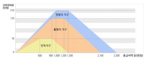 지난해 총소득이 '단독가구'는 1천300만원(최대 지급액 70만원), '홑벌이가구'는 2천100만원(최대 지급액 170만원), '맞벌이가구'는 2천500만원(최대 지급액 210만원) 미만일 경우 신청자격이 주어진다.