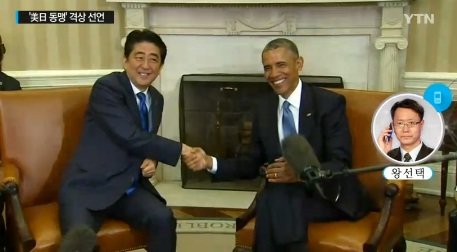 아베는 공동 기자회견에서 “확고한 유대로 맺어진 미·일 동맹은 세계 평화와 안정에 꼭 필요하다. 억지력은 한층 강화될 것”이라고 밝혔다. 오바마도 이에 대해 “우리는 글로벌 파트너”라고 말했다.