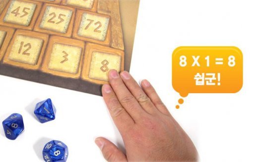 예를 들어 주사위를 굴려 2, 5, 11이 나왔다고 가정하자. 그러면 2 X 5를 해서 10이 적힌 타일을 가져와도 되고, (5-2) X 11을 해서 33이 적힌 타일을 가져와도 된다. 사칙연산을 통해 만든 숫자가 피라미드 타일 위에 있다면, 해당 타일을 가져올 수 있는 것이다. 만약 5 X 11을 했지만 피라미드 타일 위에 55가 없다면 재빨리 다른 숫자를 생각해 내야 한다.