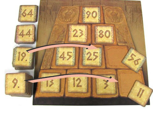 이렇게 만든 연산식의 값이 피라미드 타일에 적힌 숫자와 일치한다면, 그 결과값을 외치고 해당 타일을 가져와 자기 앞에 놓는다. 맨 처음으로 숫자 타일을 가져간 사람은 모래시계를 뒤집는다. 다른 사람들은 모래시계의 모래가 모두 아래로 떨어질 때까지 연산식을 완성해 다른 숫자 타일을 가져갈 수 있다.