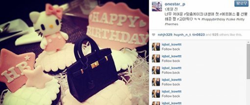 박한별은 지난해 11월 자신의 인스타그램 계정에 “너무 귀여운 맞춤케이크. 내 생애 첫 에르메스를 선물해 준 쩡 고마워”라는 글과 사진을 올렸다. 사진 속에는 아기자기한 맞춤 케이크와 가방이 있다.
