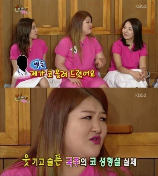 또 이국주는 “그때 감사해서 그 달에 있던 병원 행사에 갔는데 의사 선생님이 ‘제가 국주씨 코를 올려드렸다’고 말했다. 그런데 사람들이 ‘저게 올린 코야’라는 반응이더라”며 “그게 소문이 나서 성형했다는 얘기가 생겼다”고 전해 웃음을 자아냈다.