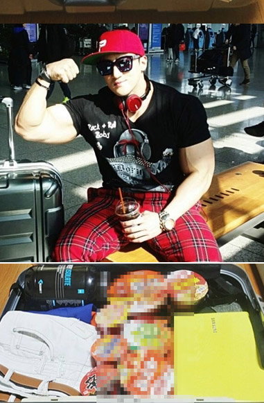공개된 사진에서 황철순이 공항에 앉아 LA 출국을 기다리고 있다. 황철순의 캐리어 안에는 한국 컵라면이 가득 들어있다.