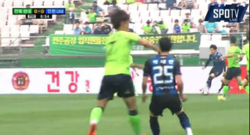 23일 전주월드컵경기장에서 열린 '현대오일뱅크 K리그 클래식 2015' 전북 현대와 인천 유나이티드의 경기가 시작 되고 전반 3분 만에 한교원이 퇴장 당했다.