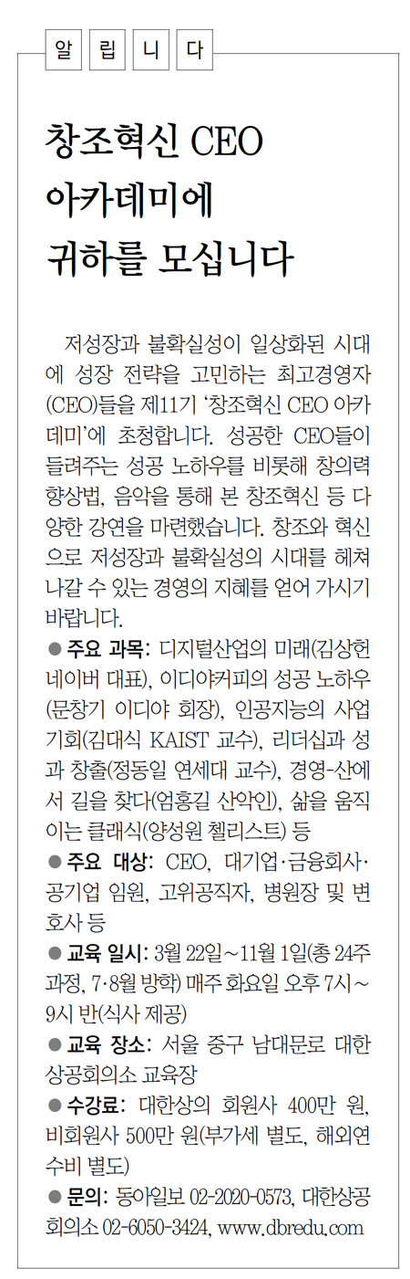 [알립니다]창조혁신 CEO 아카데미에 귀하를 모십니다