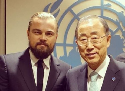 디카프리오는 과거 자신의 인스타그램에 "파리에서 열린 COP21. 반기문 유엔 사무총장과 '기후 행동'을 위한 향후 방법을 논의하기 위해 만났다"라는 설명과 함께 인증샷을 게재했다.