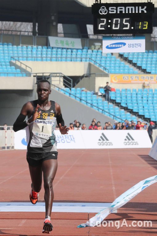 에루페의 기록 2시간5분13초는 한국에서 열린 마라톤대회 최고기록. 4년전 이 대회에서 자신이 세운 종전 최고기록(2시간5분37초)을 24초 앞당겼다.