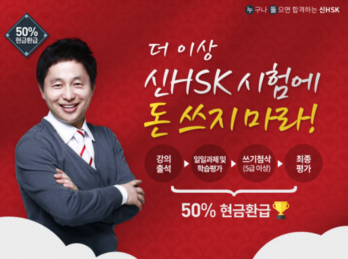 기초 수준이라 할 수 있는 HSK 3급을 포함해 HSK 4급, HSK 5급, HSK 6급 등 수준별 과정과 함께 6급 단기 및 이론까지 포함한 종합과정까지 총 6개의 과정이 마련돼 있어 선택의 폭이 넓다. 쓰기 영역의 경우 원어민 강사의 무료 첨삭도 제공하고 있어 오프라인 못지않은 시스템을 갖추고 있으며, 동기부여를 위해 출석 등 일정 조건을 충족하면 수강료도 50% 환급해 준다.