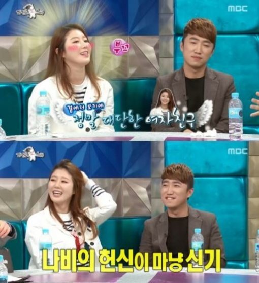 나비는 이어 "처음에 부담스러웠다. 남자친구로는 아니라는 생각이 들었는데 라디오를 같이 하다보니까 자상하고 책임감도 있다"며 의외의 모습에 마음이 움직였다고 말했다.