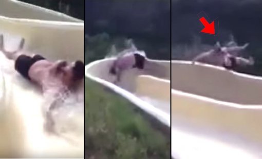 한 남성이 워터슬라이드를 타다 속력에 못 이겨 기구 바깥으로 날아가 버리는 아찔한 영상이 네티즌의 시선을 끌고 있다.