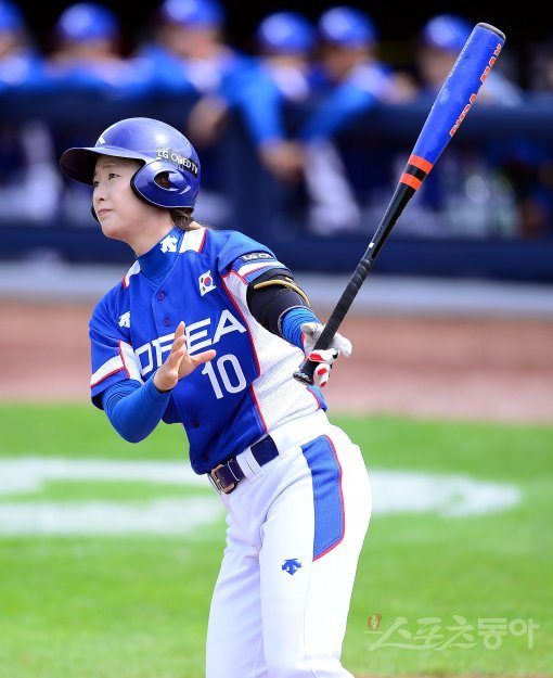 드림볼파크에서 열렸다. 3회초 무사 2루 한국 이예지가 1타점 좌전 3루타를 치고 있다.