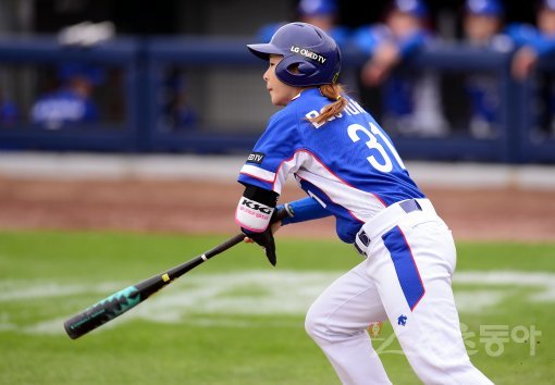 드림볼파크에서 열렸다. 4회초 1사 3루 한국 배유가가 1타점 중전 안타를 치고 있다.