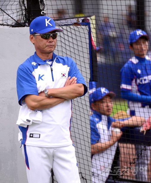 드림볼파크에서 열렸다. 한국 김용수 코치가 선수들의 모습을 바라보고 있다.