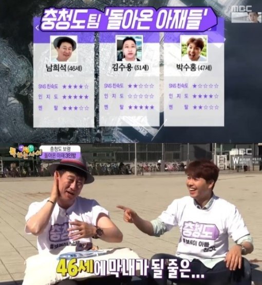 남희석은 16일 방송된 MBC 추석 특집 '톡쏘는사이'에서 박수홍, 김수용과 한팀으로 만났다.