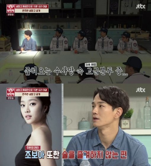 ‘냉장고를 부탁해’에 출연한 배우 온주완이 연인인 배우 조보아가 언급되자 진땀을 흘렸다.