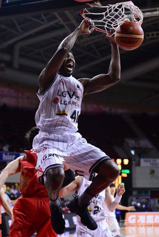 7일 안양실내체육관에서 ‘2016~2017 KCC 프로농구’ KGC인삼공사와 LG세이커스의 경기가 열렸다. LG세이커스 메이스가 김영환의 노골 슈팅을 리바운드 해 팔로우 덩크로 연결하고 있다.