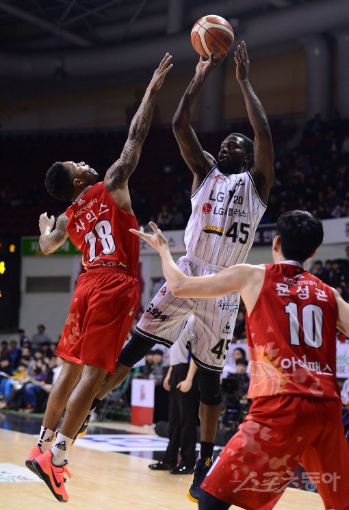 7일 안양실내체육관에서 ‘2016~2017 KCC 프로농구’ KGC인삼공사와 LG세이커스의 경기가 열렸다. LG세이커스 마리오 리틀이 안양KGC 사익스의 마크를 앞에 두고 페이드어웨이 슛을 하고 있다.