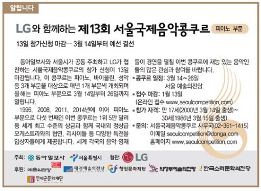 [알립니다]LG와 함께하는 제13회 서울국제음악콩쿠르 피아노 부문